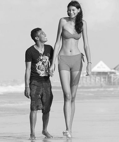 据英国媒体报道,巴西一名2.03米的模特爱上了身高只有1.63米且比自己大5岁的建筑工男友。