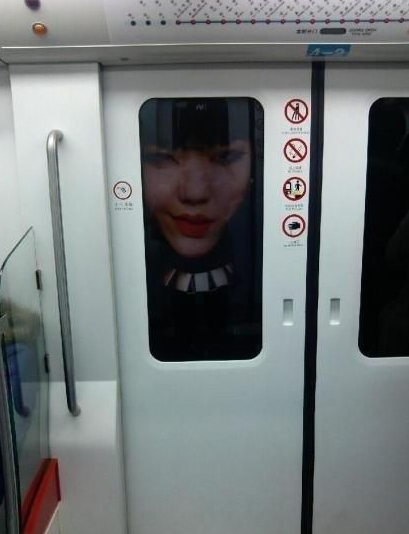 日前,沈阳网友“尹卓男”在微博中吐槽,称吴莫愁惊现于地铁门上,吓了乘客一大跳。照片中显示,地铁门外的吴莫愁嘴唇鲜红,表情鬼魅,令人不经意间产生错觉,以为吴莫愁就趴在车门外。